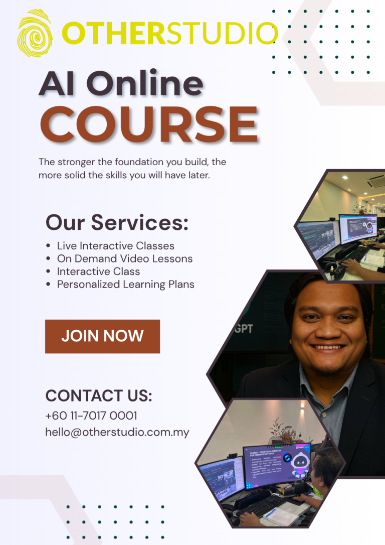 Sertai kelas online kami, belajar teknik praktikal guna ChatGPT, Midjourney, KlingAI & tools lain untuk hasilkan content dalam masa singkat