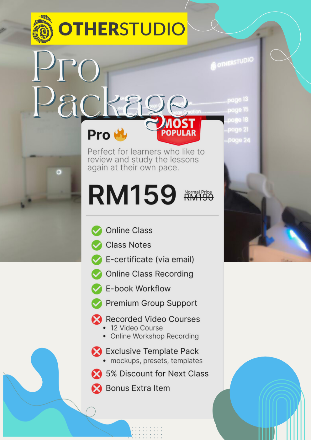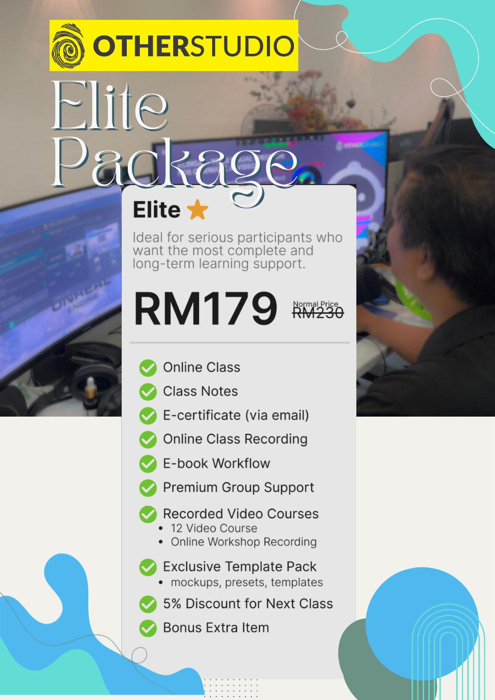 Untuk pakej Pro & Elite, anda akan dapat rakaman penuh kelas.